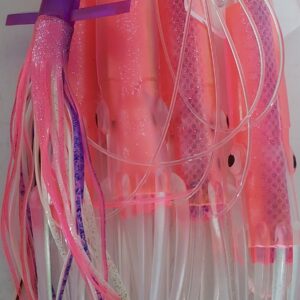 4 x 12 inch Soft Squids and a Soft Bird, Inline Daisy Chain in a mesh backed bag.